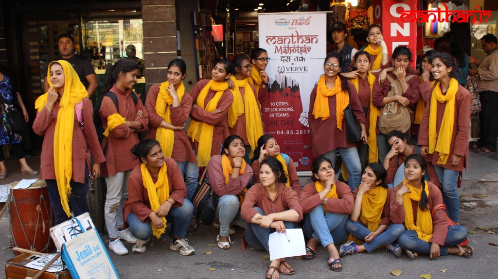 Different vision without action is merely a dream. Action without different vision just passes the time. Different Vision with action can change the world and that is what MANTHAN gives you “A DIFFERENT VISION”. A vision to observe things differently, so that we can have a fiction of different world. And with this urge to change the world, India’s largest street play festival MANTHAN has been on its ardour since last 23 days with performances in around 25+ cities of India till now. Organised by VERVE – The street play society of Shaheed Sukhdev College of Business Studies, University of Delhi Manthan’17 started with Manthan Mahotsav दस-तक with planned performances in 10 cities of India including Delhi at the same time on 4th of march including Bhopal where Yuva Shakti theatre group performed their play “BADLAAV – Samay ki Pukaar”, Manesar where Dramebaaz performed “Aakrosh”. in Chandigarh, Awaaj performed “Bezuban Ki Kahani Unhi Ki Zubani”. Ek Sath Rang Mandal summon up the people of Gandhi nagar with their play “Jaago Bandhu Jaago Bhaiya. Young thespians performed their play “Hum or Humara Samvidhan” in Solan, Ashwini art academy played “Nasha hai Abhishaap” in Janipura, “Padh k Ganvaar” by zealous production in Banglore, streets of Bhubaneshawar got to know about the humanity in today’s time by the play “Insaniyat Biki Kaudiyo ke Bhaav” performed by Kartavya, Ahemdabad where Vangaurd theatre performed their play “Her Body Her Rights” and the major one Delhi with 32 performances at the same time on 15 prime locations like Dilli Haat INA, Nehru place, Green park, Jantar mantar, Vishwavidyala Metro Station, Sparks mall, M2K Rohini etc. A street play is not just meant for entertainment, a street play artist feels the stories of ignored people, sees the unheeded situations, sees the unseen time and that is what we want you to feel, only then there will be the change in the mindset of people, change in the thinking, change in the society.